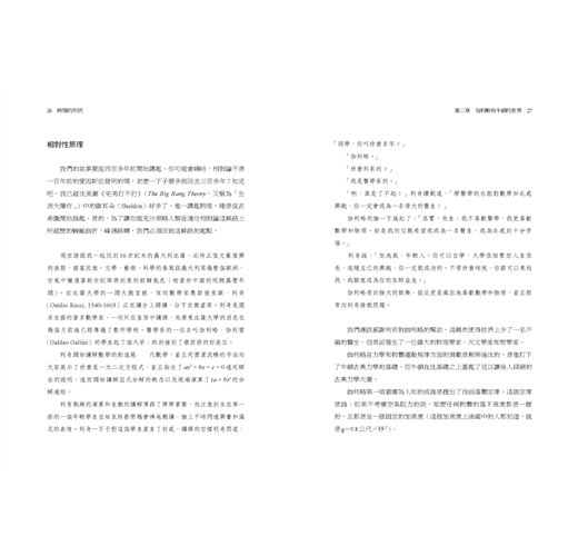 我們這本書大致可分為上下兩部分。前六章和大家一起回顧物理學走過的四百多年坎坷歷史,這段歷史中的懸念,其精彩程度不亞於任何一段戰爭史,因為物理學的發展本身就是一部精彩的好萊塢懸疑大片。在伽利略、牛頓等巨星紛紛謝幕之後,我們的超級巨星愛因斯坦閃亮登場,而他成為我們的主角的時候才只有26歲。他就像是一個橫空出世的大俠,無門無派,但是一出手就讓天下震驚,他的絕招就是「相對論」。在第六章,我將講述一段跨越半個多世紀的厚重和真實的歷史故事,這個故事塵封已久,但我想告訴大家,真相往往比小說更曲折。後四章是本書的下半部分,故事更神奇,真相更驚人,我將幫你細緻地剖析時空的真相,帶你領略神奇的四維時空奇景。我們先一起去了解整個宇宙時間光錐的終極圖景,然後再回到原子的深處見識一下不可思議的微觀世界,最後看一看當今物理學的最新進展──萬物理論。你只要隨便記住其中的一兩段,就能讓你在平時和朋友們吃飯聊天時大放異彩,只是要當心別聊得興起忘了吃菜,不要發生總是發生在筆者身上的悲劇:話講完了,菜也被別人吃光了。