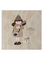 戴著貝蕾帽,手拿畫冊,在陽光暖暖照耀下,伸伸懶腰,享受舒服的日常。
