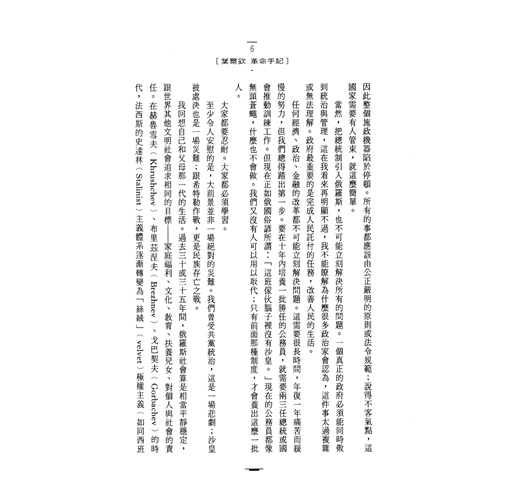 任何經濟、政治、金融的改革都不可能立刻解決問題。這需要很長時間,年復一年痛苦而緩慢的努力,但我們總得踏出第一步。要在十年內培養一批勝任的公務員,就需要兩三任總統或國會推動訓練工作。但現在正如俄國俗諺所謂︰「這班傢伙腦子裡沒有沙皇。」現在的公務員都像無頭蒼蠅,什麼也不會做。我們又沒有人可以用以取代;只有前面那種制度,才會養出這麼一批人。