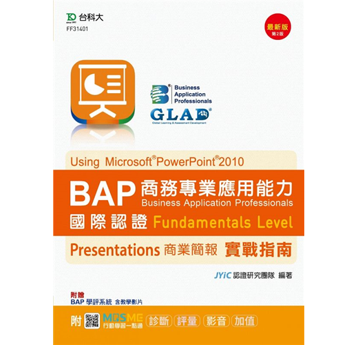 1.本書為BAP Presentations商業簡報基礎能力等級(Fundamentals Level)考前複習所擬訂之測驗題組與解析,讓您輕鬆考取BAP國際認證,有效提昇競爭力!