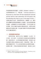 為基督教教育訂下了一個定義:「Christian education is the process by which those who have experienced a personal spiritual rebirth in their relationship with God partner with the indwelling Holy Spirit to grow in the image of Christ.」3這個定義是合宜的,基督教教育是一個過程,是一個有重生經驗的基督徒與聖靈同工的過程,是長成基督形像的過程,這個過程可以有很多的環節,可以有各樣不同的活動,但是主軸的內涵和目標是固定的,我們必須掌握固定的內涵和目標,但是進行過程中的管道和活動則是可以靈活運用的。