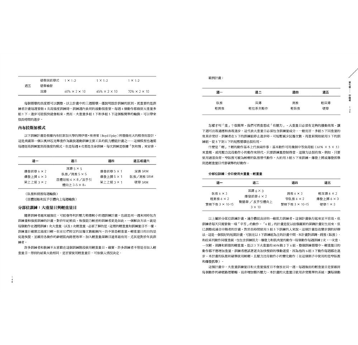 ◎中階者訓練的章節中,額外加入18種訓練計畫和11個詳細範例