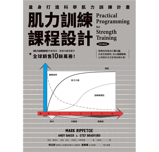 本書每次更新版,目的都是提 供更清楚的說明。十年前我在《肌力體能訓練期刊》中提出,新手、中階者、進階者需要不同訓練計畫,被視為異端。兩派審閱者皆反對我的論點,他們堅持所有人都適用波動的週期化訓練,而我認為新手不適合,他們批評我完全不懂科學的組織原則。自此之後,我們的論述不斷進步,而我希望第三版能更清楚說明,人類對外在刺激的適應現象,和所有通往極限的進步現象,依循著相同軌跡。本書已賣出超過九萬本,且幫助很多人變得更強壯,在所有書籍裡,只遜於《肌力訓練聖經》。