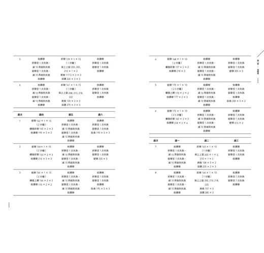 ◎針對所有程度的訓練者,列出每次、每日、每週的詳細訓練計畫內容