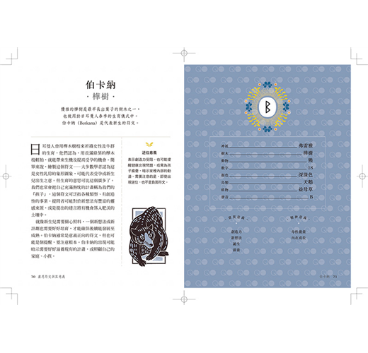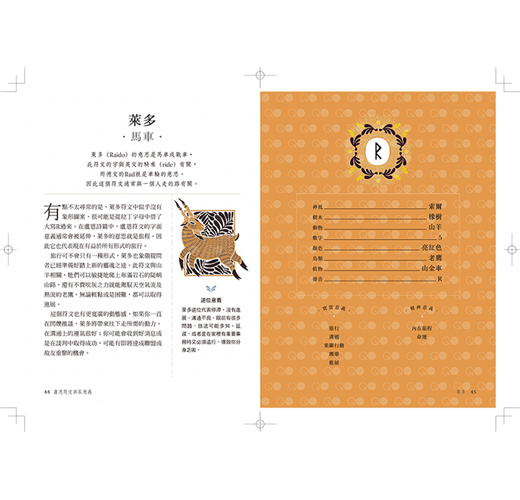 一致推薦◆神諭占卜書(尺寸: 19.5×14.5cm):96頁,介紹文化與歷史背景、占卜方式,以及符文的意義與對應元素