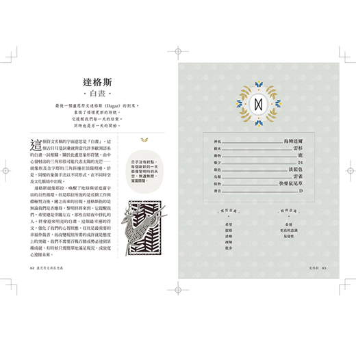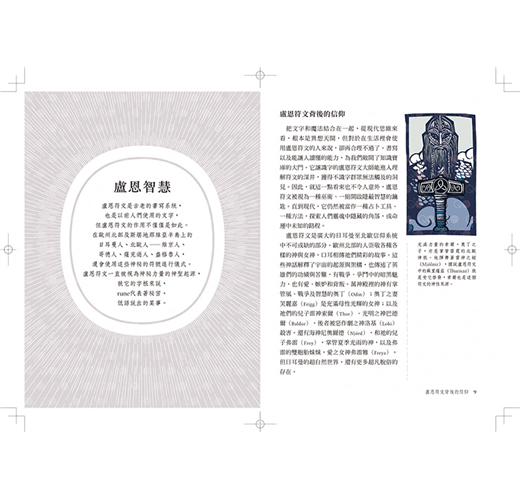 這是一組非常適合自學的占卜系統,本書除了針對每個符文的基本意義說明,也搭配「實質」與「精神」意義兩組關鍵字,將盧恩符文的應用提升至更高維度的視野,完美結合自然與精神層次,深化並豐富符文的寓意。