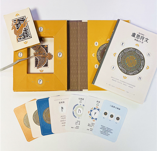 ◆神諭占卜卡(附牌盒;尺寸: 10×7cm):25張符文占卜卡、7張幸運符卡、4張牌陣指引卡