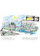 大人們受到陰鬱天氣的影響,個個無精打采、抱怨連連……,這時一個小男孩微笑著說:為什麼要等春天來改變呢?不如我們自己想辦法將街道變成有花有草的樣子!小男孩「主動出擊」的提議被大人們欣然接受,第二天早上全體市民總動員,大家呼朋引伴,手上拿著油漆罐、刷子,抬著梯子、鷹架,為每個角落彩繪上象徵春天的花、草、魚、鳥……,於是整座城市改頭換面,從憂鬱的灰暗轉變成一片愉悅的黃藍綠,四處都展現著明亮清新的「春光」。