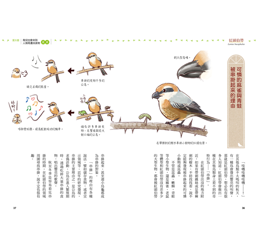 這是一本充滿趣味,又可以用來增進賞鳥內涵的練功秘笈。雖然是日本都會觀點出發的翻譯書,在文化及地理上或許有所差異,所幸同樣位處東亞,本書所描寫的大多數鳥類在臺灣都可以看到,對本地的賞鳥者會很有幫助,鳥類的生存本能依舊,對環境的適應會產生變化,行為上的同中求異、異中求同,更可添增賞鳥的深度,值得推薦。──方偉宏 中華民國野鳥學會理事長