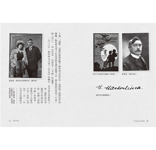 被譽為「比利時莎士比亞」的梅特林克,究竟為何會創作《青鳥》,以及為何他的作品中充滿了令人感動的隱喻,本書獨家收錄「梅特林克文學特輯」,讓讀者細細品味其創作背景與動機,也讓孩子看見文學創作的背後,作者的人生哲思。