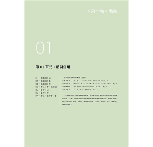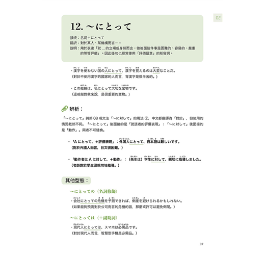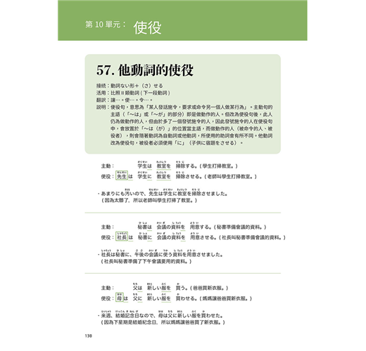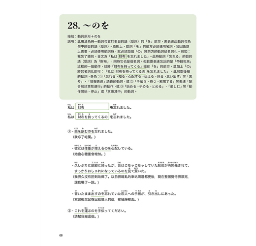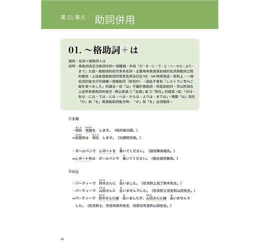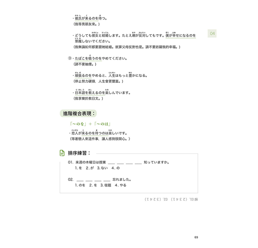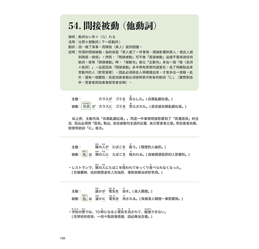 此外,本書亦詳細列舉出各句型的各種活用型態,並適時加入難度較高的「進階複合表現」,讓學習者解句型與句型之間如何結合、運用。