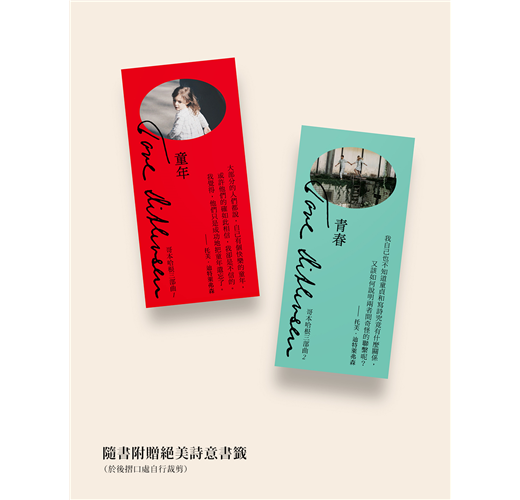 (淺綠版青春與鮮紅版童年一式兩張附於後摺口,可自行裁剪)
