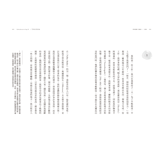 1.我的第一份工作,我只在那裡待了一天。為了早點抵達,早上七點半我就出門了,「你在一開始的時候就必須特別努力,」母親說,雖然她自己年輕時,從來沒有辦法在同一個地方完成一份工作。我穿著堅信禮隔天穿的連身裙,那是蘿莎莉亞(Rosalia)阿姨裁的。材質是粉藍色的羊毛,前端有摺子,因此我不像平常一樣看起來那麼胸部平坦。我踩著單薄、耀眼的陽光走向韋斯特布羅街(Vesterbrogade),覺得每一個人看起來都如此地自由和快樂。當他們經過皮爾巷(Pile Allé)附近,那很快就會把我給吞沒的街門時,他們的腳步變得如舞者般輕快,而幸福它住在瓦爾比山丘(Valby Bakke)的另一端。那暗黑色的入口有一股焦慮的氣味,這使我不禁有點害怕,奧爾費特生(Olfertsen)太太會不會察覺,並以為那是我自己身上帶著的氣息。我的身體和動作變得僵硬且不自由,我站在那裡聽她飄移不定的聲音,給我說明許多許多事情,而在這些說明之間,她的聲音好像一個空的線軸,暢行無阻地絮叨著無謂的瑣事;關於天氣、關於男孩,以及關於我超齡的身高。她問我有沒有帶圍裙來,我從空空的書包裡拿出了媽媽的圍裙。在圍裙的接縫處有個洞,只要是母親負責的東西,總是會有一些小問題,而我被這景象所觸動。母親在很遠的地方,我只能在八小時以後才能再見到她。我在和陌生人打混,對她來說,我只是一個被她以若干金錢買了若干時間的體力的這樣一個人。至於我的剩餘部分,她完全都不在乎。我們走進廚房的時候,一個穿著睡衣的小男孩跑出來。「早安媽咪,」他甜甜地說,同時貼著他母親的腿,投給我充滿敵意的眼神。太太輕輕地扯開自己的腿,說:「這是托芙(Tove),跟這位好心的女士打個招呼。」他猶豫地伸出手,當我握著他的手時,他威脅地說:「我說什麼,你就做什麼,不然我開槍打你。」他母親大聲地笑著,同時指著一個放著杯子和茶壺的托盤,要我泡好茶再把它們帶進客廳裡去。然後她牽著男孩的手,踩著她的高跟鞋踏入客廳。我把水煮沸,倒入已經裝好茶葉的茶壺裡。我並不確定我做得對不對,畢竟我既不曾喝過茶,也不曾泡過茶。我暗想,富人喝茶,窮人喝咖啡。我用手肘壓下門把,走入客廳,隨即驚恐地站著不動。奧爾費特生太太坐在威廉(William)叔叔的腿上──我幾乎忘了他的存在了,東尼(Toni)躺在地上把玩一個火車。太太立刻跳起來,在地上來回走動,她寬大的袖子時不時把陽光剪成憤怒的光影。「請您,」她嘶吼,「進來以前,記得敲門。我不知道您的習慣是什麼,但是在這裡,我們都是這樣做的,所以您最好開始習慣。請出去!」她指著門,我困惑地放下托盤,走出門去。不知為何,她對我說「您」,如針般刺痛了我。我不曾經歷過這種情況。當我走出玄關,她大吼:「現在敲門吧!」我敲門。「進來!」她這樣說,這一次,她和威廉叔叔各自坐在各自的椅子上。我滿臉通紅,感到羞辱,馬上就認定了,我不喜歡他們任何一個人。這多少有點幫助。喝完茶後,他們兩人走入睡房換好衣服。接著威廉叔叔握了握那母親和男孩的手以後,便出了門。顯然地,我是一個連再見都不值得說一聲的人。太太接著給了我一張用打字機打出來的長長清單,上面寫著我一整天在不同的時間點裡該做的事。然後她再次消失在睡房裡,當她再次出現時,臉上帶著冷峻而銳利的表情。我發現她化了濃妝,並散發出一種不自然的、毫無生命力的朝氣。我覺得她之前還更好看一些。她跪在地上親吻著還在玩耍的男孩,然後站起來,對著我的方向輕輕點頭,便消失了。男孩馬上站起來,拉著我的裙子,奉承地望著我。「東尼想要鯷魚。」鯷魚?我無語,對於兒童的飲食習慣,我一無所知。「不行。這裡寫著……」我仔細讀著時間表,「十點鐘,給東尼吃黑麥粥;十一點鐘,溏心蛋和一顆維他命;一點鐘……」他不想再聽下去。「哈娜(Hanne)每次都給我吃鯷魚,」他不耐煩地說,「其它的東西,她自己會吃掉,你也可以這樣做。」哈娜顯然是在我之前的家務助理,再說,我也沒辦法逼一個只想吃鯷魚的孩子吞下其他食物。「好吧,」我說,大人們都走了以後,我的心情也好了一些。「鯷魚放在哪啊?」他爬上一張廚房椅子,拿下兩個罐頭,接著在一個抽屜裡找到一個開罐器。「打開,」他急切地說,把開罐器遞給我。我打開罐頭,應他的要求把他放在餐桌上。接著,我讓一尾接一尾的鯷魚消失在他嘴裡,當魚都被吃完以後,他要求到樓下的院子裡去玩。我幫他穿好衣服,把他從廚房的後樓梯間送下去。我可以從窗戶監督他玩。然後我必須打掃房屋。其中一點寫:「用掃地機清理地毯。」我找到了那一台沉重的怪物,把它拖到客廳裡的紅色地毯上。為了試用,我把它開到一些纖維上,然而它們卻不消失。於是我搖了搖又弄了弄那機器,結果蓋子打開了,一堆髒東西掉到地毯上。我沒辦法將它裝回去,也不知道該如何處理那堆髒東西,於是把它踢到地毯下,再把地毯踩平。折騰了這半天,想必已經十點了,我肚子也餓了。我吃下了東尼的第一份食物,再吞下兩顆維他命丸補充體力。接著換到下一個項目:「把每一個家具用水刷一遍。」我驚訝地看了看單子,再環顧著家具。這太奇怪了,但是這裡顯然是這樣做的。我找到了一把堅硬的刷子,在一個臉盆裡裝了冷水,再次從客廳開始。我堅定且認真地擦洗,直到我洗刷了大半架三角鋼琴。我忽然覺醒,發現有些什麼大大的不對勁。在三