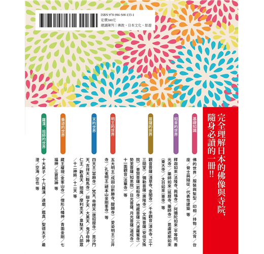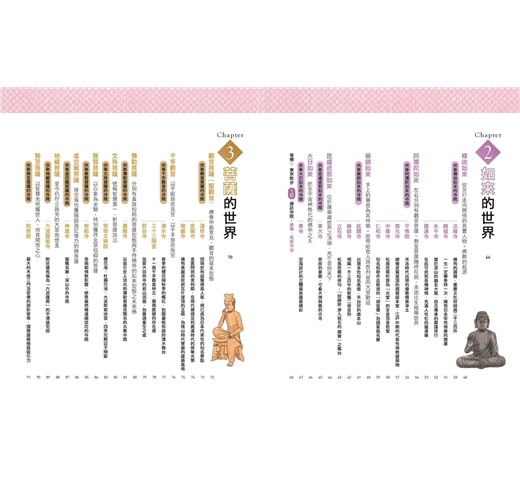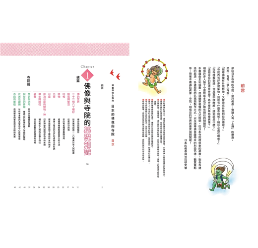 本書藉由全彩插畫,透過簡單易懂的方式說明,從日本寺院裡供奉的佛像,到各寺建造的起源、各建築物的名稱與製作方式,以及諸尊佛菩薩帶來的利益功德、觀賞重點等。帶著本書遍訪佛像、寺院,相信您的世界將會更加開闊喔!