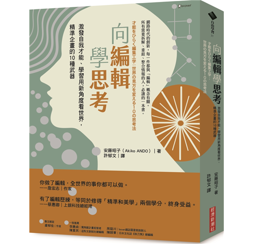 多年後,我有機會搶先閱讀安藤昭子女士的《向編輯學思考》,在其充滿理性的文字敘述下,意外覺得親切,因為她與我一樣相信編輯的最重要價值,在於協助他者擁有看待世界的全新視角,並促成溝通。