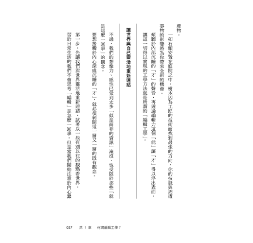 一切從「編輯」開始 30/為什麼要稱「編輯」為「工學」? 32/「編輯」讓「才能」開花結果 35/讓世界與自己靈活地重新連結 37