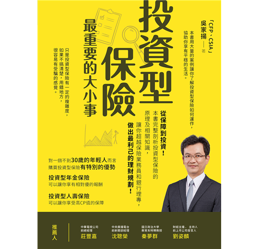 本書全面解析投資型保險的原理及相關知識。讓你可以清楚判斷是否要購買相關的商品,不會因為誤解而浪費了金錢。