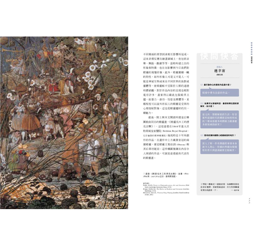 坊間藝術史書籍大多是翻譯外國出版品,罕見來自本地學術界和藝術界的集體發聲。這本書是由台灣作者群用心打造的難得成果,用道地直白的語言講解藝術史的重要課題。為了呈現作者群的具體面貌,我們在每篇文章末特別開闢「快問快答」專欄,讓幕後的作者走到幕前,回應一些簡單有趣的問題,例如:最打動你心的藝術作品是什麼?最想和哪位藝術家聊天?藝術史讓你最開心或最痛苦的地方?你最想成立什麼樣的美術館?從作者們的回答,可以瞥見人人都有令他/她心跳加快的藝術作品和心靈發熱的神馳時刻,人人也有為藝術史憂煩的難眠理由。當你讀到「快問快答」專欄,便能撫觸到每個作者的喜悅和掙扎,知曉他們關於未來美術館的奇思妙想。原來,藝術史這門學科並不是冷硬枯燥的,它的知識生成和研究者的生命體驗是互相交織的,富含人性的溫度和韌性。