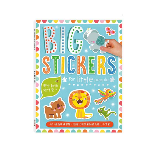 【BIG STICKERS FOR LITTLE PEOPLE】系列為了符合孩子的小手,貼心設計了超大貼紙,方便孩子貼上和撕起,而且貼紙的圖案豐富又可愛,吸引孩子的目光!透過貼貼紙的過程,不只訓練孩子使用手指,還能邊探索邊玩樂,進而引起孩子學習的興趣。