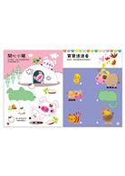 貼貼紙:每頁皆有設計黏貼處,有超多圖案豐富又可愛的貼紙,訓練孩子透過觀察形狀的變化,將貼紙貼上,並且在貼貼紙的過程,訓練孩子使用手指。