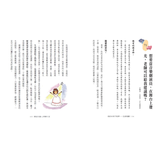 青春期的孩子對未來的職涯還在摸索階段,充滿迷惘。藉由書中青少年的故事,引導孩子認識自己、了解外在世界,並努力培養專長、適時發揮優點,充實生活體驗,慢慢勾勒未來的藍圖。