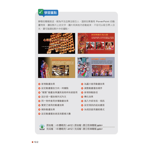 每個範例內容皆有作品展示、重點說明、範例執行與延伸練習,依循學習順序練習,就能做出實用的作品!