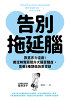 本書列舉8種拖延症大腦,介紹全類型通用的防拖延實驗和解決方案,讓你對症下藥、輕鬆克服拖延腦。並附有拖延症大腦檢查表,可確認自己目前屬於哪個類型。