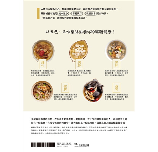 擁有中國烹飪世界大賽麵點總冠軍、團體金牌、十大美食名廚新秀的殊榮,龍師傅的好手藝是傳承自台菜老字號儂來餐廳董事長黃洪忠的教導,他講究作菜要用「五感」,即看、聞、聽、嚐及手感,配合紅、黃、綠、白、黑五色食物精華,將蛋白、蛋黃、紅蘿蔔、青菜、香菇等合於五行對應的食蔬,應用於每餐的餐桌中。烹調中的調味料,則盡量選擇天然性的來源,如:醬油採用手工釀造的,少人工色素及添加物,既健康且環保。希望藉由本書將大家最愛的人氣台菜,轉化為主婦們餐桌上的美味藥膳。