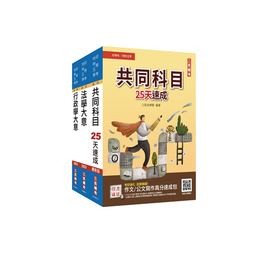 ★套書內含:共同科目25天速成(國文+英文+公民)+法學大意+行政學大意!