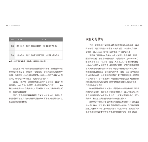 2.作者透過自身心理學專業,搭配時事、案例、訪談與各界理論,一舉突破日常決策和真相判讀的盲點。