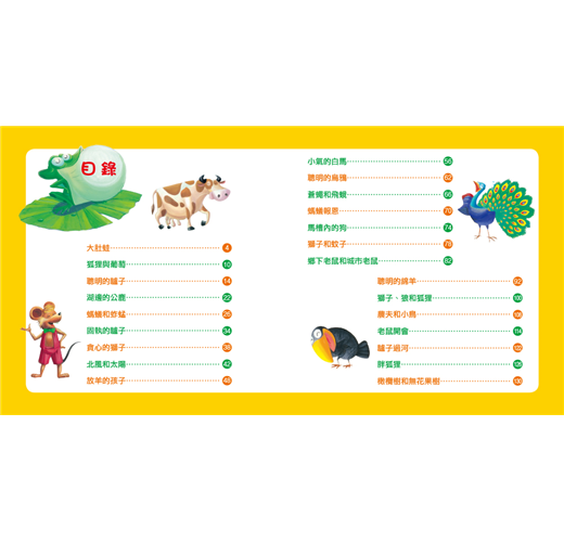 1. 精選最經典的伊索寓言故事23篇,內容均以動物為主角,精采、生動,容易吸引幼 兒閱讀。