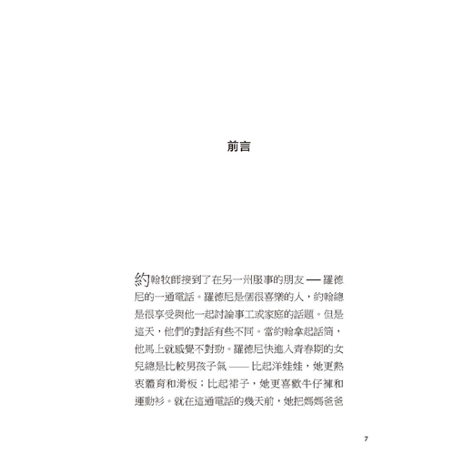 約翰牧師接到了在另一州服事的朋友── 羅德尼的一通電話。羅德尼是個很喜樂的人,約翰總是很享受與他一起討論事工或家庭的話題。但是這天,他們的對話有些不同。當約翰拿起話筒,他馬上就感覺不對勁。羅德尼快進入青春期的女兒總是比較男孩子氣—— 比起洋娃娃,她更熱衷體育和滑板;比起裙子,她更喜歡牛仔褲和運動衫。就在這通電話的幾天前,她把媽媽爸爸拉到一旁告訴他們,現在她的性別認同是男性而不是女性。這個宣告對羅德尼和他妻子來說,無疑是晴天霹靂。