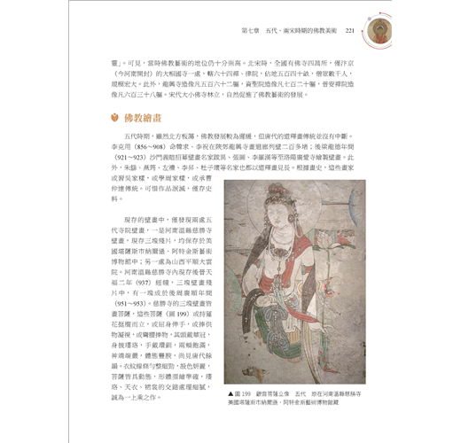 佛教自漢代傳入中國以來,迄今已有兩千餘年的歷史,不但充實了中國宗教、哲學和思想的內涵,佛教的圖像與隨之而來的域外風格,也在中國美術上留下了深刻的烙印。隨著中國佛教的發展,聚集信眾的寺院建築、讓人頂禮膜拜的佛教造像、便於講經說法和繫念觀想的佛教繪畫,一一應運而生,佛教的東傳無疑豐富了中國美術創作的內容與形式。如今中國寺塔林立,佛教石窟與摩崖遍布大江南北,宏偉壯觀的古寺建築、形貌各異的佛教雕塑、燦爛輝煌的窟寺壁畫隨處可見,它們都是中國珍貴的藝術瑰寶與遺產。由此可見,佛教美術實是中國美術史...