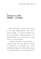 運動:現在動起來,立即消耗糖,讓肌肉恢復對胰島素的反應,也就有機會解除胰島素過量的危機。動起來,還能重新喚起身體與腦的連結。一個人如果能持續運動,可以啟動 7000 個有益健康的基因表現。這些基因活化起來,也就從最基礎的層面為身體建立全新的迴路。