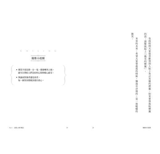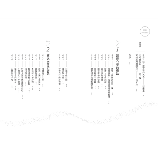 這本書就是志玲省視與練習的心得。這些心得,使志玲免去了很多煩惱、守住了不少底線。只要你曾經嘗試過跟人相處,就知道這些煩惱有多普遍,而這些底線又有多重要。