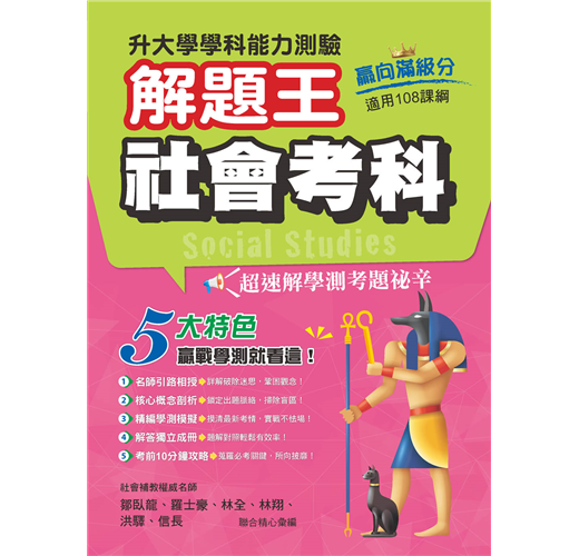 以「核心素養」為主軸的108課綱於111年新型學測初登場,學測命題方式不僅更趨靈活多變,且更偏重實用性及生活化,同時,也增加了科際整合題型的比重,在在檢驗著考生學習各科知識的融會貫通。面對來勢洶洶的「108課綱」教改洪流,鶴立團隊仍秉持著專業的素養與追求卓越的態度,特聘教學經驗豐富的社會科權威名師,為《升大學學科測驗解題王:社會考科》進行全方位改版!