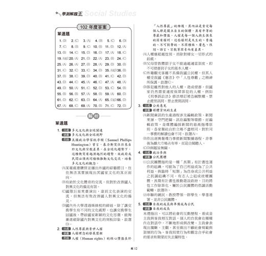 鶴立團隊延攬超強補教名師,以其多年豐富的教學經驗,逐題編寫詳盡的解析,對於難度甚高的科際整合、混合題型更有精闢的剖析。此外,每題輔以「考點出處」、「速解錦囊」與「思路引導」,一方面藉由相同考點一再標註出現,提醒同學其重要性;另一方面則請名師剖析解題關鍵,助同學輕鬆破解自己的思考盲點與學習瓶頸,進而掌握答題關鍵鑰匙,邁向高分!最後,保留既有「獨立成冊解答本」的優點,提高同學題解對照的效率,把節省下來的時間,用在衝刺複習的刀口上!