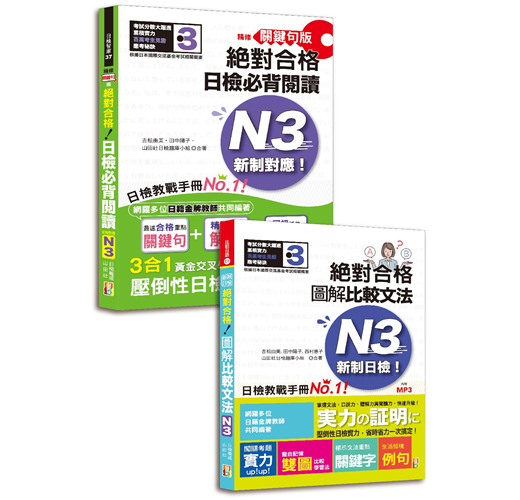 放心! 不管是考前半年或是考前一個月,《精修關鍵句版-新制對應絕對合格!日檢必背閱讀N3》帶您揮別過去所有資訊不完整的閱讀教材,磨亮您的日檢實力,不再擔心不知道怎麼準備閱讀考試,更不用煩惱來不及完成測驗!
