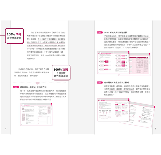 第一步,先幫您將考題歸類出11種出題方式,指引您破題需掌握的重點關鍵字和問題重點,並培養聽到問句就能猜測考題方向的能力。不論題目是要問時間、地點、人物還是天氣,都能從容不迫的掌握關鍵對話,穩拿高分。
