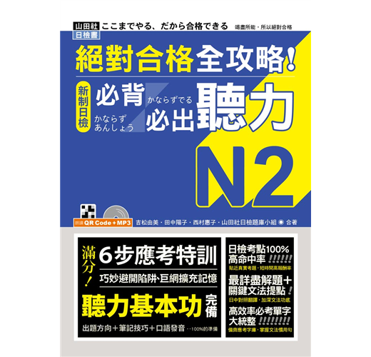 聽力測驗中,掌握單字和文法往往都是解題的關鍵,因此本書從考題中精心挑選N2單字和文法,方便讀者對照並延伸學習,學習最全面!另建議搭配《絕對合格!新制日檢 必勝N2情境分類單字》和《朗讀QR碼 精修關鍵字版 新制對應 絕對合格 日檢必背文法N2》,建構腦中的N2單字、文法資料庫,學習效果包準100%滿意!