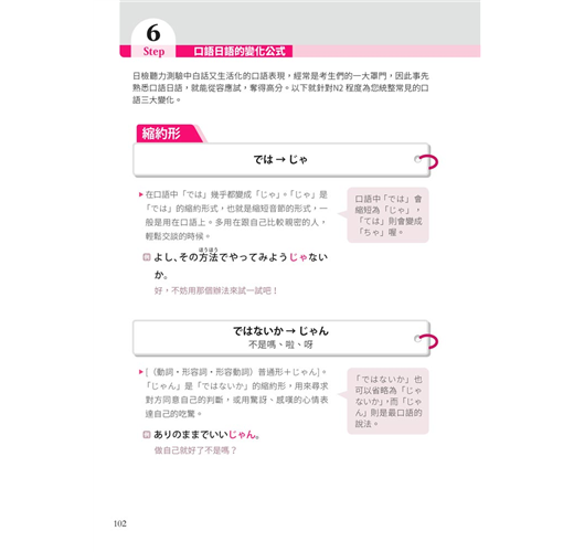 只會教科書上死板的說法是不夠的,各種省略、簡化、慣用語充斥在日本人的日常生活中,日檢聽力也有大量的口說用法。本書將為您統整出普通說法到口語的變化公式,不只幫您突破聽力瓶頸、勇奪高分,還能學會日本人最道地的口語表現。