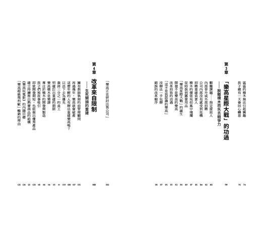 作者踏訪位於丹麥的樂高總公司以及世界各地的工作現場,從經營高層到第一線員工,訪問業界相關人士。並以樂高品牌集團執行董事長喬丹.維格.納斯托普(Jørgen Vig Knudstorp)為首,專訪樂高經營高層及在商業經營、革新創意領域的專家教授。