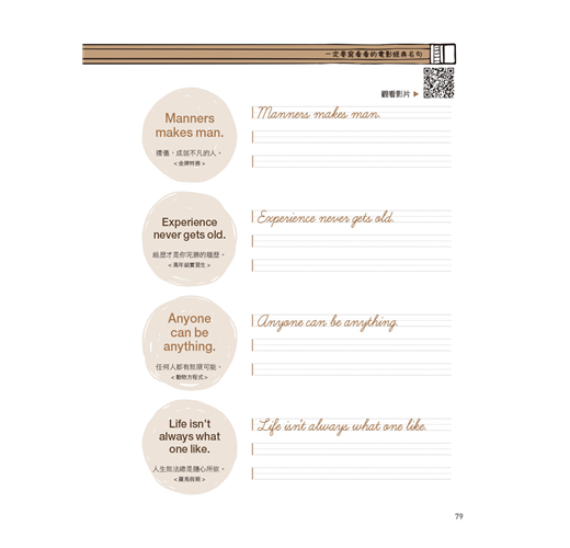書中集結值得一練與記住的眾多生活佳句與經典英文語句,