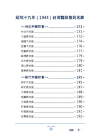 本書竝列出1944年時的台灣醫師會員名錄,涵蓋全台各地與各族群,計約2,404人,以便利讀者搜索與對照。