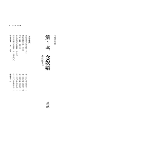 每一篇宋詞都有各項:「排行指標」的名次,「解讀」的賞析。