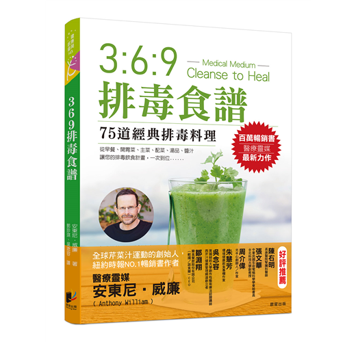 醫療靈媒安東尼‧威廉(Anthony William)備受讚譽的9 天 3:6:9 排毒飲食法已深入影響世界各地,本書食譜囊括3:6:9排毒飲食法中排毒法的種種實踐,包含3:6:9 排毒飲食法的具體飲食計畫,以及與之搭配的75份食譜,有了它你將更能駕輕就熟地實踐你排毒淨化的健康人生旅程。