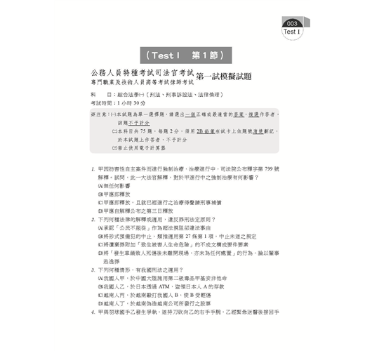 1.藉由試題演練熟悉司律一試的答題邏輯,並檢驗自己對爭點的精熟度。