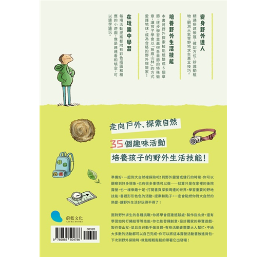 本書將野外探索技能統整成5個章節,逐步學習並贏得各章節的特殊徽章,以「無痕山林」的方式愛護地球,成為合格的野外探險家!