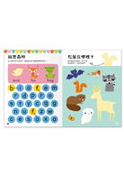 全書有13個趣味練習題、超過20張的互動貼紙,小朋友可以按照形狀,找到相對應的貼紙。從趣味中學習,並且培養基礎認知能力。