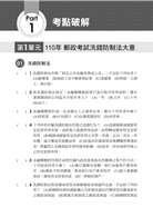 特別針對郵政洗錢防制法大意第一屆的郵政試題歸納分類,了解考情趨勢,以在複雜多變的題型中能隨機應變。